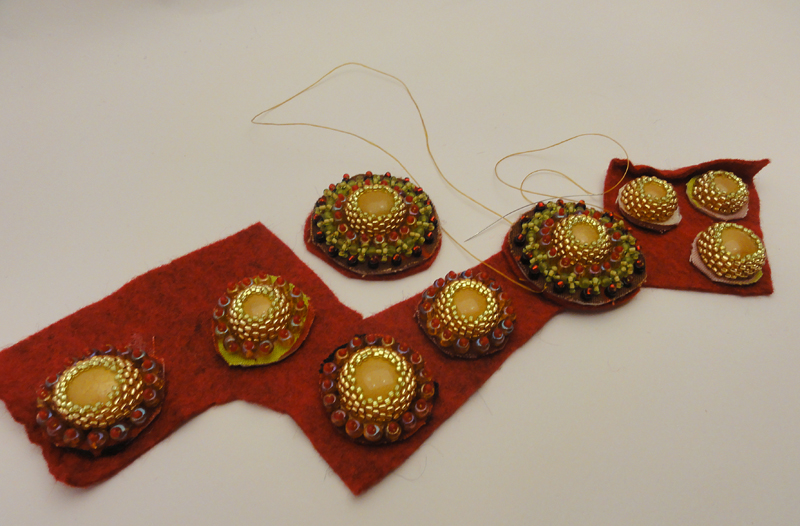 I just can't believe that here we are half way done with December. I've been missing in action here because I had some oral surgery last week. I need to have three gum grafts, and I'm so happy that I had it all done at once as I would never have gone back if I had had them done one at a time. I basically have four holes in my mouth right now. I haven't been able to eat anything solid for this whole week, and I'm so missing out on all this holiday foods. Which maybe isn't too bad of a thing as I really don't need to gain any of that predicted holiday pounds. Haven't gone out much except to buy more soup or dog food, so I've had plenty of time down in the ArtCave experimenting with Hal (my Janome sewing machine) and all the beads I've accumulated. The dogs have been happy that I've been home. Arwen has made herself my nurse. The first night I was home, she slept outside my bedroom not letting Chris near. Then when I finally got up, she sat next to me licking my hand. She wanted to lick my jaw, but I had to say no there. She also has been sleeping with me at night, and I must say that I've been enjoying having a furry warm bed partner with these cold frosty mornings.